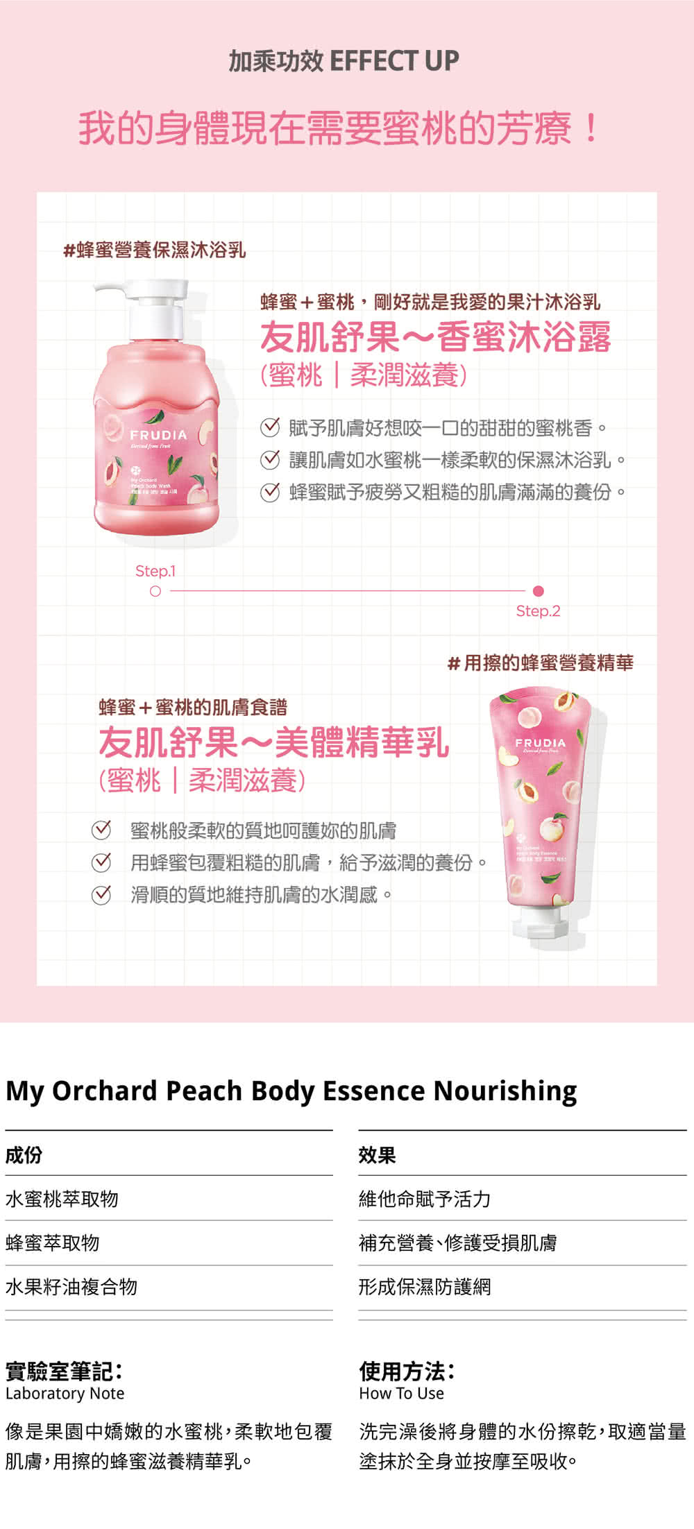 非常推薦【FRUDIA】友肌舒果~美體精華乳(蜜桃|柔潤滋養)(身體乳)給大家